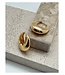 This earring LADY-E-G belongs to the Belgian label Murielle Perrotti. These gold-toned earrings exude timeless class and modern elegance. With their rounded, organic shape and high-shine finish, they create a stylish statement without being over the top. The hoop features a slightly wider, curved design that sits beautifully on the ear and provides a luxurious look.