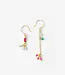 This earring TEMPO-ES-GT belongs to the Belgian label Murielle Perrotti. This asymmetrical earring feels fresh and airy with a touch of playful elegance. It is finished with a cluster of amazonite-colored beads and an elegantly suspended fine chain.