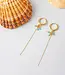 This earring TEMPO-ES-GT belongs to the Belgian label Murielle Perrotti. This asymmetrical earring feels fresh and airy with a touch of playful elegance. It is finished with a cluster of amazonite-colored beads and an elegantly suspended fine chain.