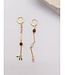 Cette boucle d’oreille asymétrique FITI25-E3-GP appartient à la marque belge Murielle Perrotti. Ces boucles d’oreilles ludiques dégagent à la fois gaieté et raffinement. Elles associent des éléments dorés à un mélange espiègle de perles : des facettes brun-rouge chaleureuses, une pierre blanche laiteuse et douce, de petits accents verts et un cristal rose étincelant.