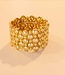 Deze armband Florette Goud straalt pure luxe en tijdloze elegantie uit. Het ontwerp bestaat uit rijen van goudkleurige bollen, perfect met elkaar verbonden tot een harmonieuze structuur die soepel om de pols valt. De volle glans en zachte rondingen geven het sieraad een vrouwelijke, krachtige uitstraling — opvallend maar verfijnd.