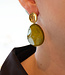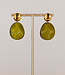 Deze oorring Feline Goud/Groen trekt de aandacht door de elegante uitstraling. De grote, druppelvormige hanger in olijfgroen heeft een gladde, glanzende afwerking. De goudkleurige, bovenkant voegt een luxueus accent toe en zorgt voor een harmonieus contrast.