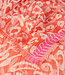 Deze sjaal Panter Bies behoort tot het Duitse label Codello. Deze sjaal heeft een speelse, abstracte print in een warme koraalkleur met lichte accenten, wat zorgt voor een dynamisch en artistiek effect. De rand is versierd met een contrasterend roze patroon en afgewerkt met korte franjes, wat een stijlvolle en bohemien uitstraling geeft.