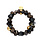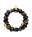 Deze armband Pan87 Zwart behoort tot het Belgische label Les Cordes. Deze set straalt een stijlvolle mix van elegantie en karakter uit. De armbanden bestaan uit een verfijnde combinatie van matte zwarte kralen, glanzende goudaccenten en bruin gemarmerde parels.