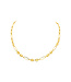 Deze halsketting Dietrich Goud behoort tot het Belgische label Les Cordes. Deze fijne halsketting is een moderne klassieker met een verfijnde twist. Ze bestaat uit een afwisseling van langwerpige, open schakels en kleine, afgeronde vierkante plaatjes, allemaal in een glanzende goudkleurige afwerking.