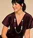 Deze lange Kobe halsketting in ecru van Les Cordes is verfijnd en stijlvol, met ovale stenen in hars en een goudkleurige ketting Lees meer..