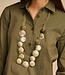 Deze halsketting Ulric Kaki behoort tot het Belgische label Les Cordes. Voeg een vleugje natuurlijke elegantie toe aan je look met deze lange halsketting. De ketting bestaat uit meerdere soepel vallende donkergroene koorden, met daarop sierlijke schelpen in khaki, afgewerkt met een parelmoereffect. Ideaal voor liefhebbers van een bohemian stijl met een luxueuze twist.