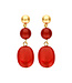 Deze oorring Denne Rood behoort tot het Belgische label Les Cordes. Deze leuke oorringen zijn een kleurrijke en vrolijke toevoeging aan elke outfit. Ze bestaan uit drie onderdelen: een matte, goudkleurige bol aan het oor, gevolgd door een glanzende ronde kraal in dieprood en een grotere, ovale kraal in een warme rode tint. De combinatie van texturen en kleuren geeft deze oorbellen een speelse, retro-geïnspireerde look.