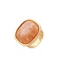 Deze ring KRI3 Ecru behoort tot het Belgische label Les Cordes. Deze stijlvolle ring is een opvallend en elegant statementstuk, perfect voor wie houdt van kleur en karakter. De steen heeft een parelmoerachtige glans die subtiel speelt met het licht en de ring een luxueuze uitstraling geeft.