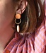 Deze oorring Bulles Orange behoort tot het Belgische label Maison Cachet. Deze verfijnde oorring straalt zachte elegantie uit met hun warme perziktinten en luxueuze goudkleurige details. De ronde steen bovenaan geeft het ontwerp een stijlvolle uitstraling, terwijl de fijne ring een speels en verfijnd accent toevoegt. De langwerpige hanger in subtiel perzik zorgt voor een sierlijke beweging en maakt het geheel extra stijlvol.