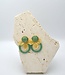 Deze oorring Halo Aqua behoort tot het Belgische label Maison Cachet. Deze elegante oorring straalt natuurlijke frisheid uit dankzij hun zachte groentint en verfijnde goudkleurige details. De ronde groene steen bovenaan vormt een harmonieus geheel met het sierlijke bladmotief, terwijl de open ring onderaan zorgt voor een moderne en luchtige uitstraling.