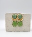 Deze oorring Lustre Aqua behoort tot het Belgische label Maison Cachet. Deze elegante oorring straalt natuurlijke luxe uit met hun harmonieuze groentinten en warme goudkleurige accenten. De ronde steen bovenaan heeft een zachte uitstraling en wordt stijlvol gecombineerd met een geborsteld goudkleurig element dat het ontwerp een moderne en verfijnde touch geeft. De diepgroene hanger onderaan zorgt voor extra dimensie en een subtiele schittering bij elke beweging.