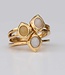 Deze ringencombinatie van MelanO by Babazou bestaat uit 3 Twisted Petite ringen met een Victorian Gem white Jade steentje, een Victorian latte steentje en een Victorian Gem yellow calcite steentje.