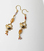 Deze symmetrische kraboorbellen SCARLET-E-GP van het Belgische label Murielle Perrotti zijn een speelse blikvanger met een luxueuze uitstraling. Het goudkleurige krabdetail vormt het centrale element en wordt verfijnd aangevuld met agaat en obsidiaan in warme tinten roze en camel. De fijne schakels en steentjes zorgen voor een elegante beweging bij elke stap.