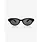 Het montuur is uitgevoerd in klassiek zwart en heeft een slanke, licht ovale vorm die elegant langs het gezicht valt. De zachte rondingen geven de bril een vrouwelijke en tijdloze look, terwijl de minimalistische afwerking zorgt voor een strakke, eigentijdse stijl. De kleine metalen details aan de zijkanten voegen een subtiel accent toe.