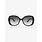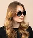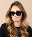 Het montuur is uitgevoerd in diep zwart en heeft een licht oversized, afgeronde vorm die zorgt voor een zachte en flatterende uitstraling. De vloeiende lijnen geven de bril een vrouwelijke en stijlvolle look die nooit uit de mode raakt. De glazen zijn voorzien van een subtiele grijze gradient, wat zorgt voor een chique effect en een comfortabele bescherming tegen fel zonlicht.