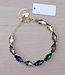 Goudkleurige tennisarmband met multicolor navette-kristallen. Lees meer..