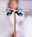 Sprankelende cluster oorbellen in blauwtinten met goudkleurige zetting.