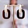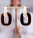 Oorring Bianca Marrone van Paviè combineert een ivoorkleurige bovenring met een cognackleurige, rechthoekige schakel. Licht en modieus met een 70's vibe.